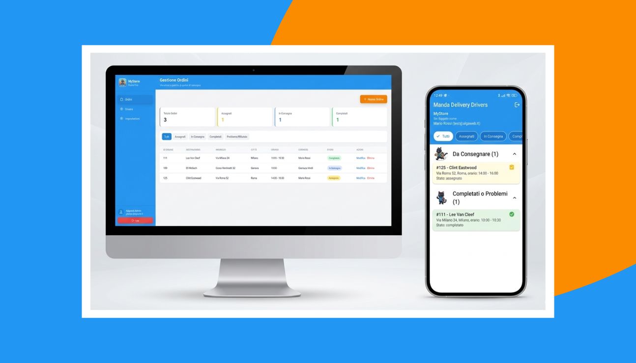 Manda Delivery Drivers è una piattaforma completa (Web App + App Mobile) progettata per supportare la logistica e le consegne dei negozi locali. Il sistema offre un pannello di controllo centralizzato per assegnare gli ordini in tempo reale a una flotta di fattorini dotati di un'app dedicata. Il progetto è nato per digitalizzare il delivery di prossimità, riducendo gli errori di consegna e ottimizzando i tempi di gestione.